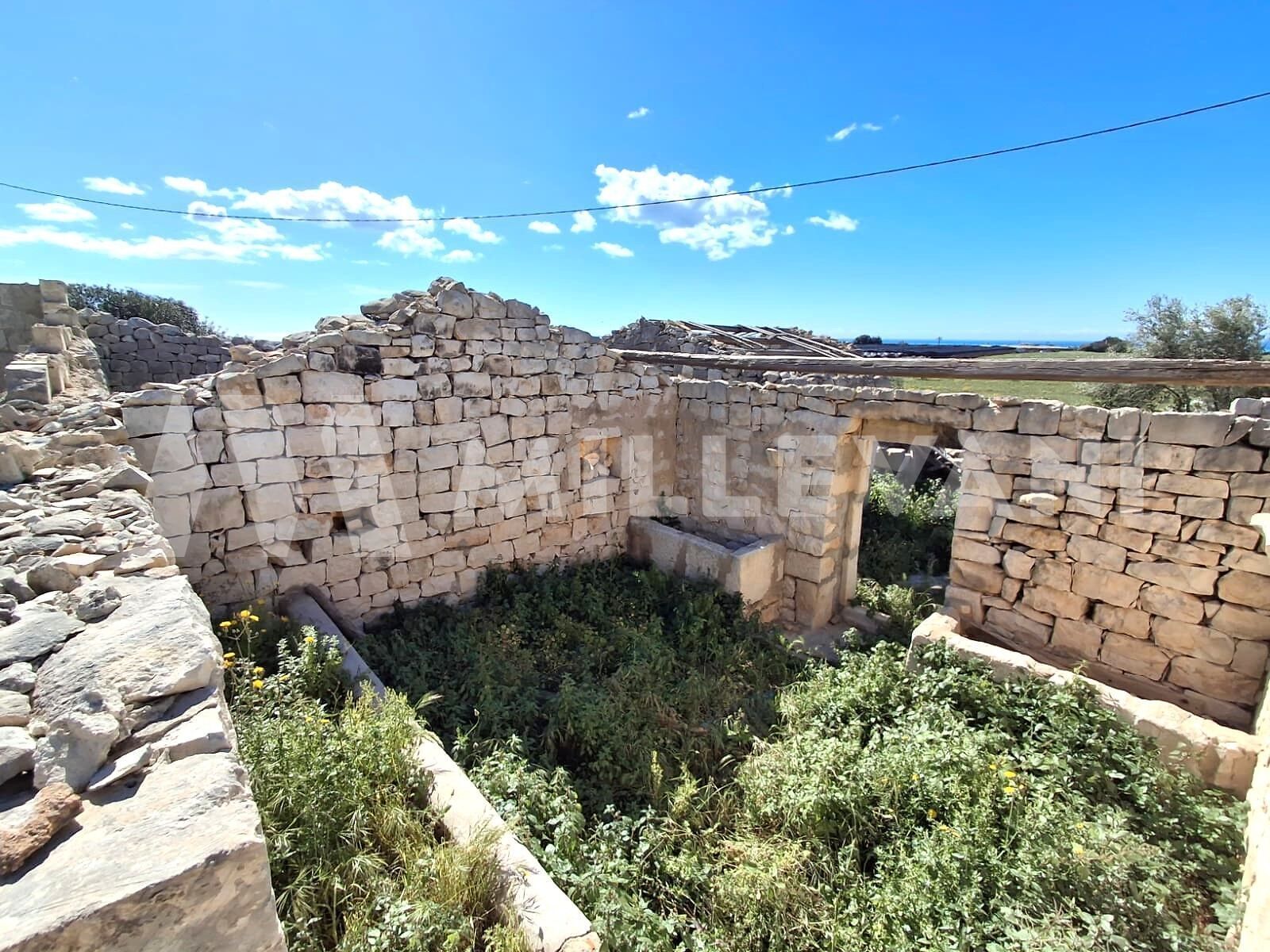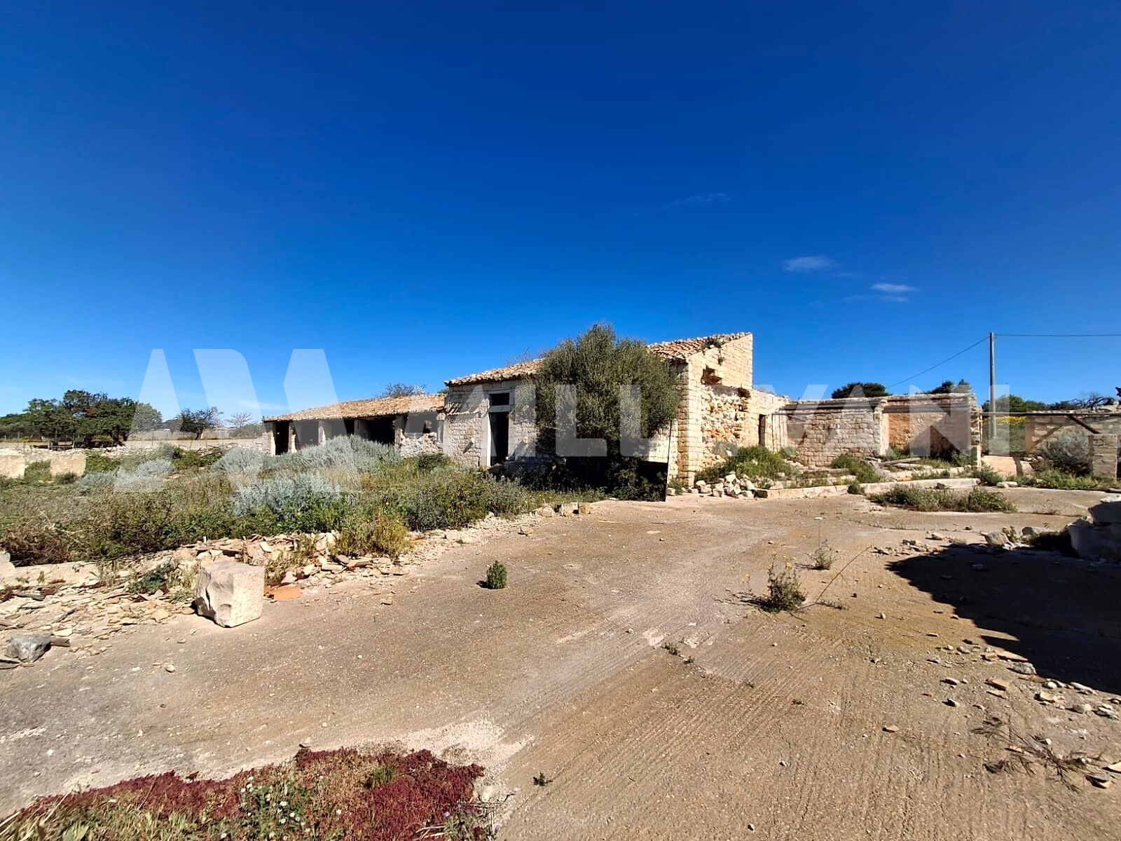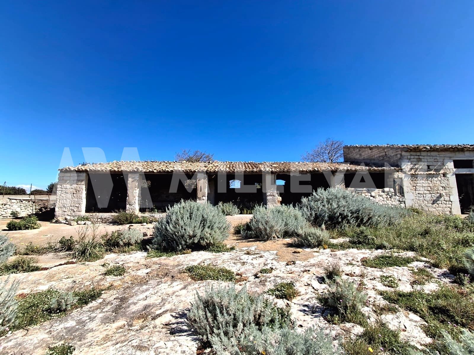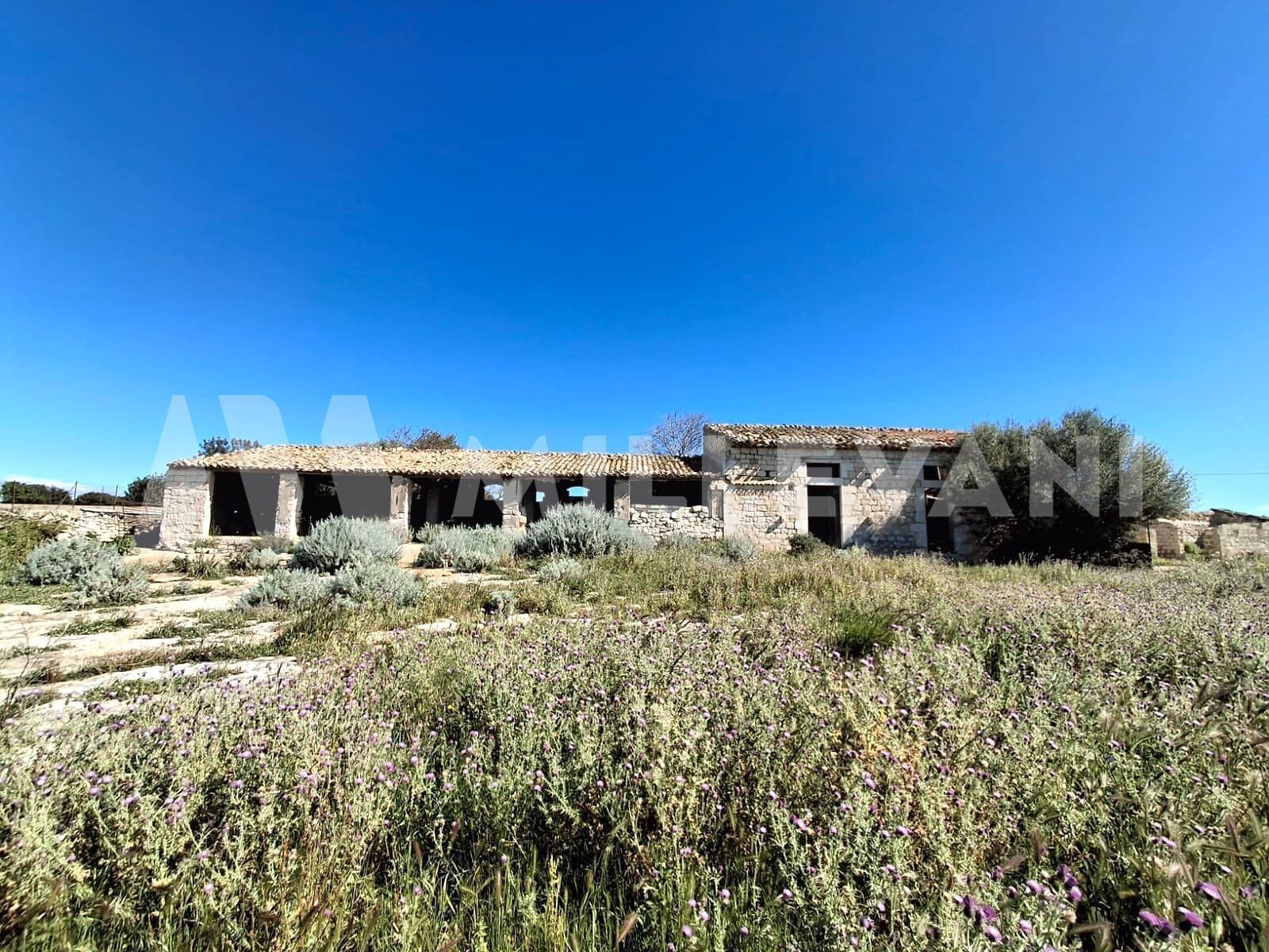 The property comprises several buildings, including the main residence and former stables, all arranged on a single level with a total surface area of approximately 550 sqm. This architectural ensemble preserves the authentic character of traditional Sicilian rural heritage and lends itself perfectly to a restoration project that can enhance its original identity.