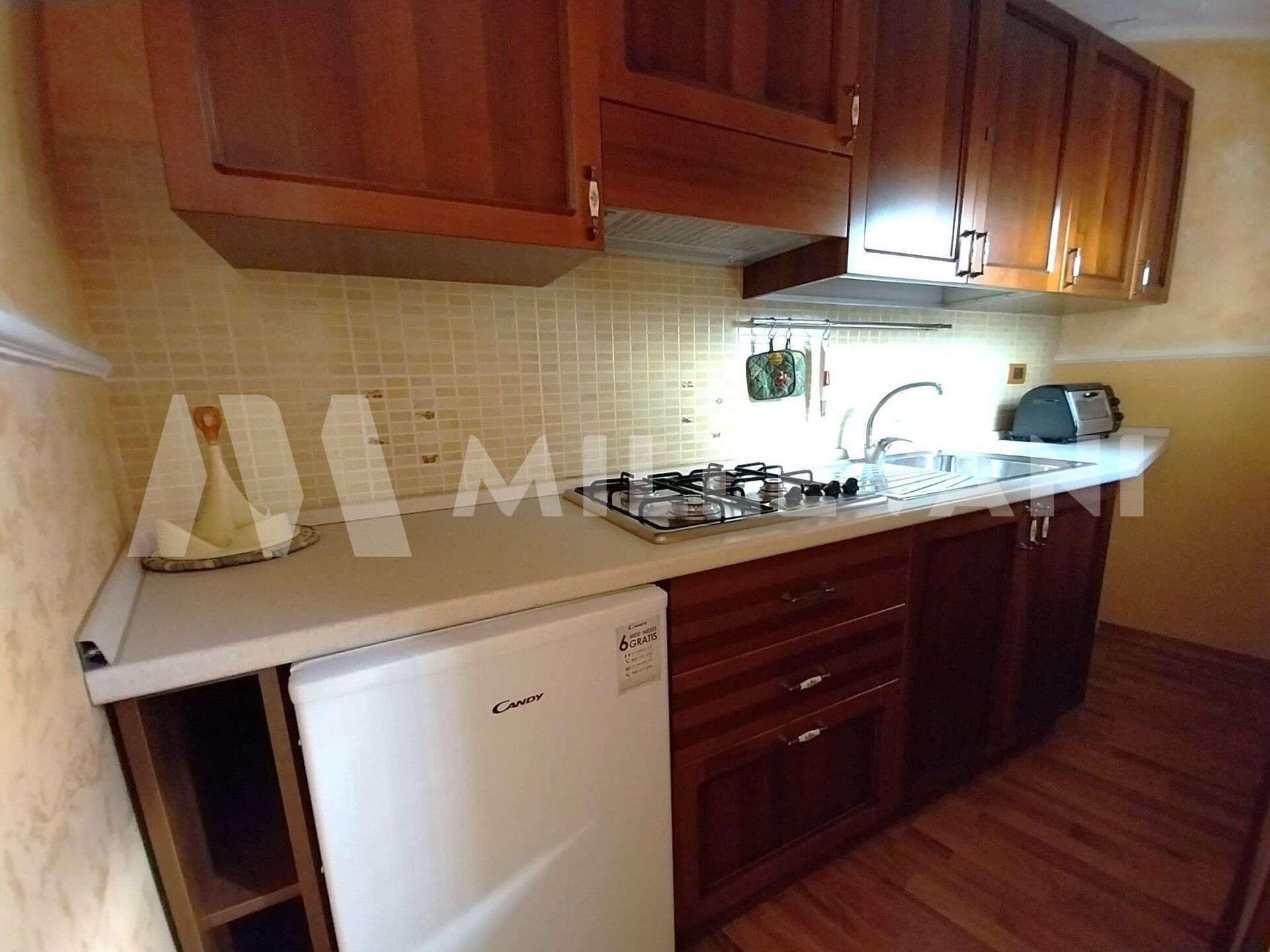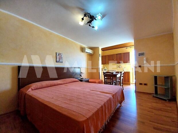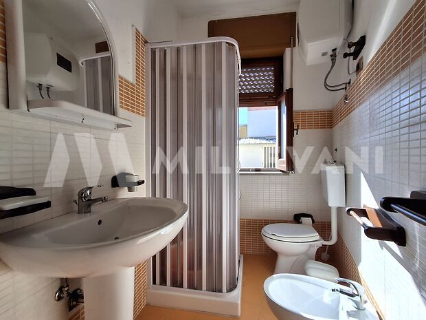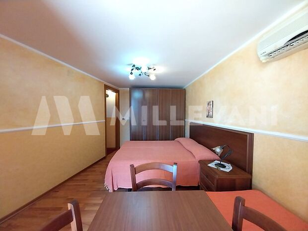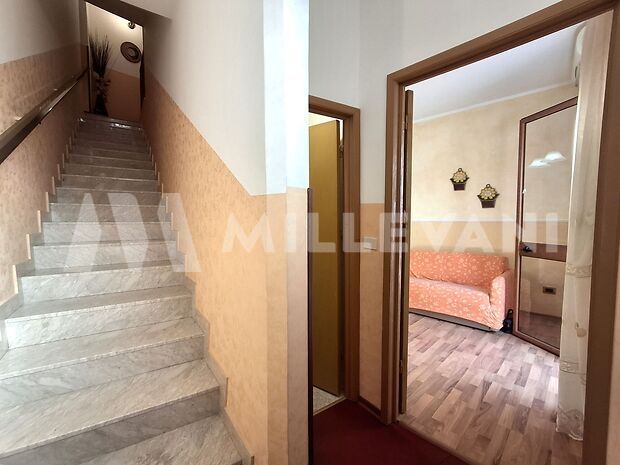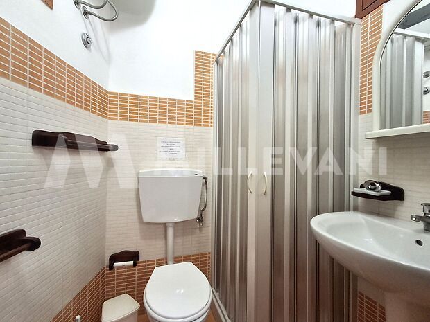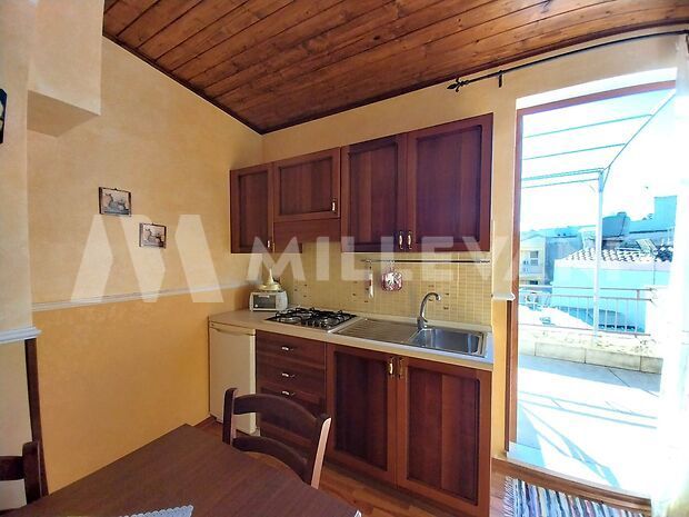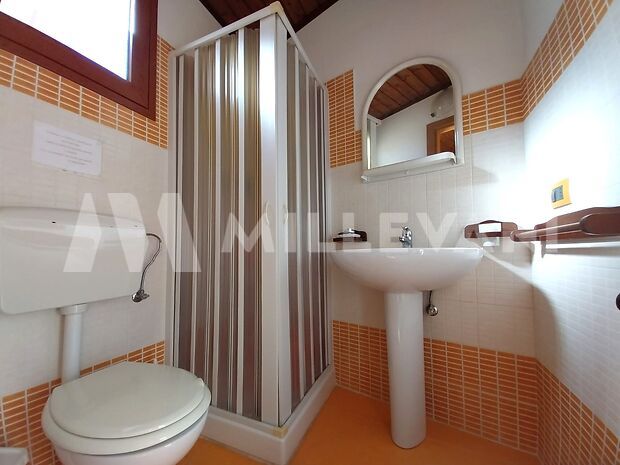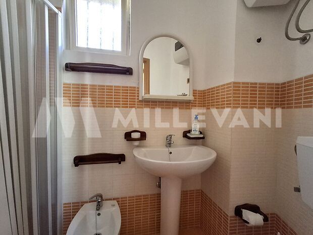 On the ground floor we find the two-room apartment: with kitchen/living room, double bedroom and en-suite bathroom with window and the studio apartment: with kitchenette, sleeping area and a comfortable bathroom with window.