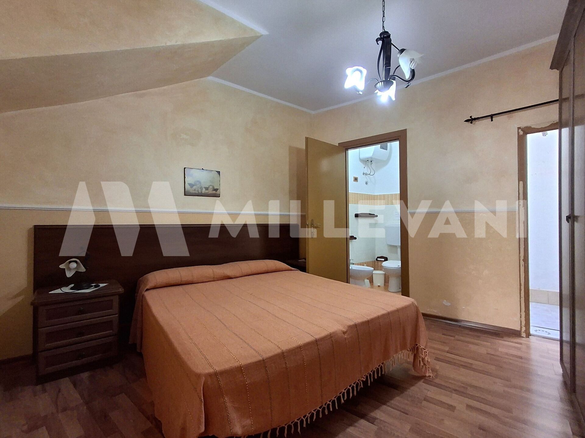 The duplex apartment on the first and second floors features a large double bedroom with a private balcony, an en suite bathroom with a window, a spacious kitchen/living room, and a habitable terrace.