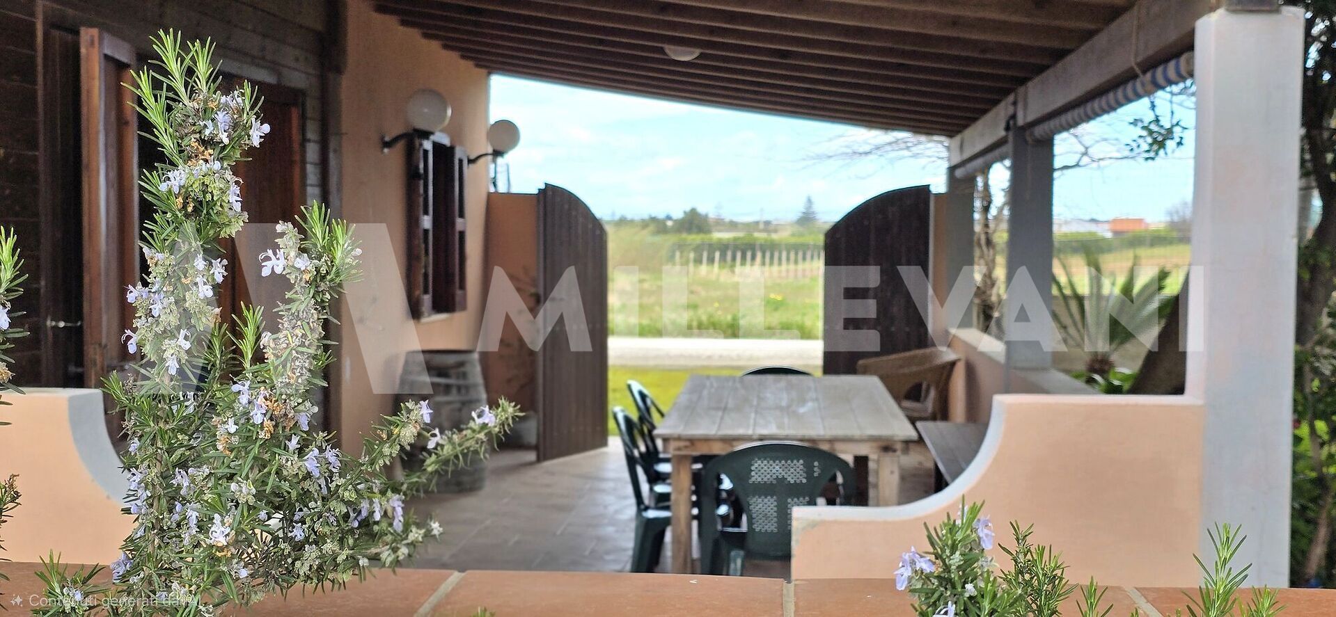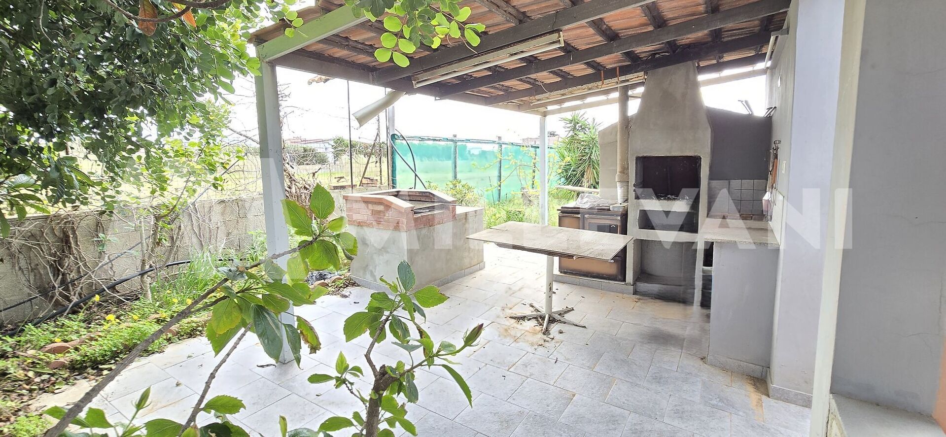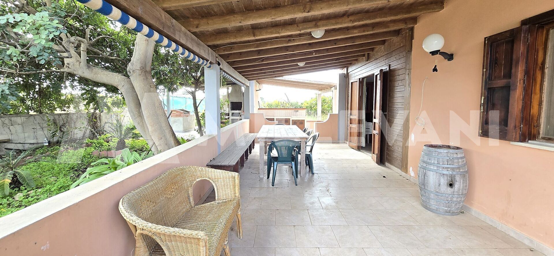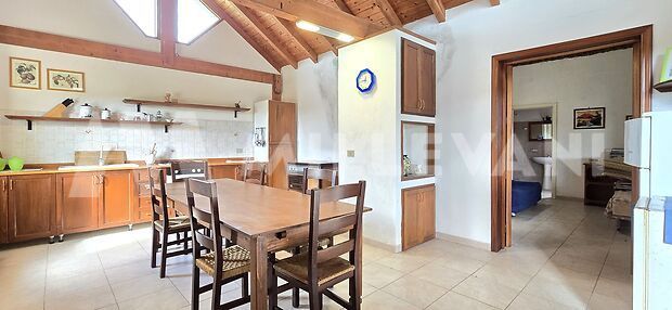 Adjacent to the living area, there is a covered veranda, a comfortable outdoor space that can be enjoyed for most of the year, ideal for al fresco dining and relaxing moments. The outdoor area also benefits from a dedicated space with a wood-fired oven and a built-in barbecue, perfect for making the most of the Mediterranean lifestyle.