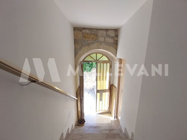 The property, ready to move into immediately, comprises an entrance hall, living/dining room with a panoramic balcony, kitchenette, single bedroom, double bedroom, also with a panoramic balcony, and a recently renovated bathroom on the first floor. On the ground floor, there is a kitchenette that could be converted into a studio apartment for guests with a separate entrance.