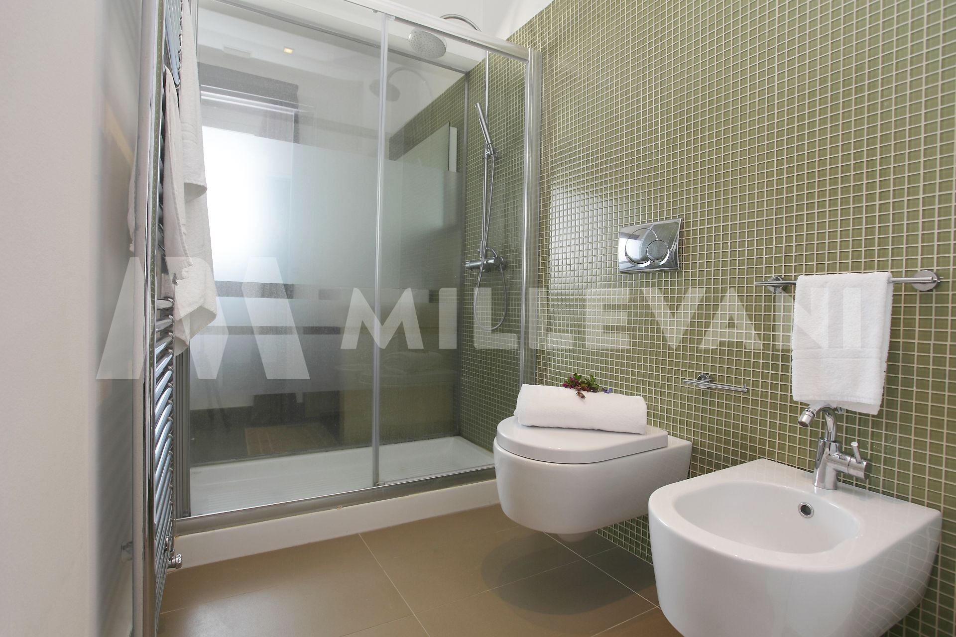 The ground floor, in addition to hosting two more bedrooms, features a relaxation area and a garage of approximately 80 square meters for parking.