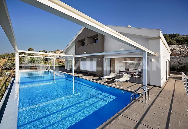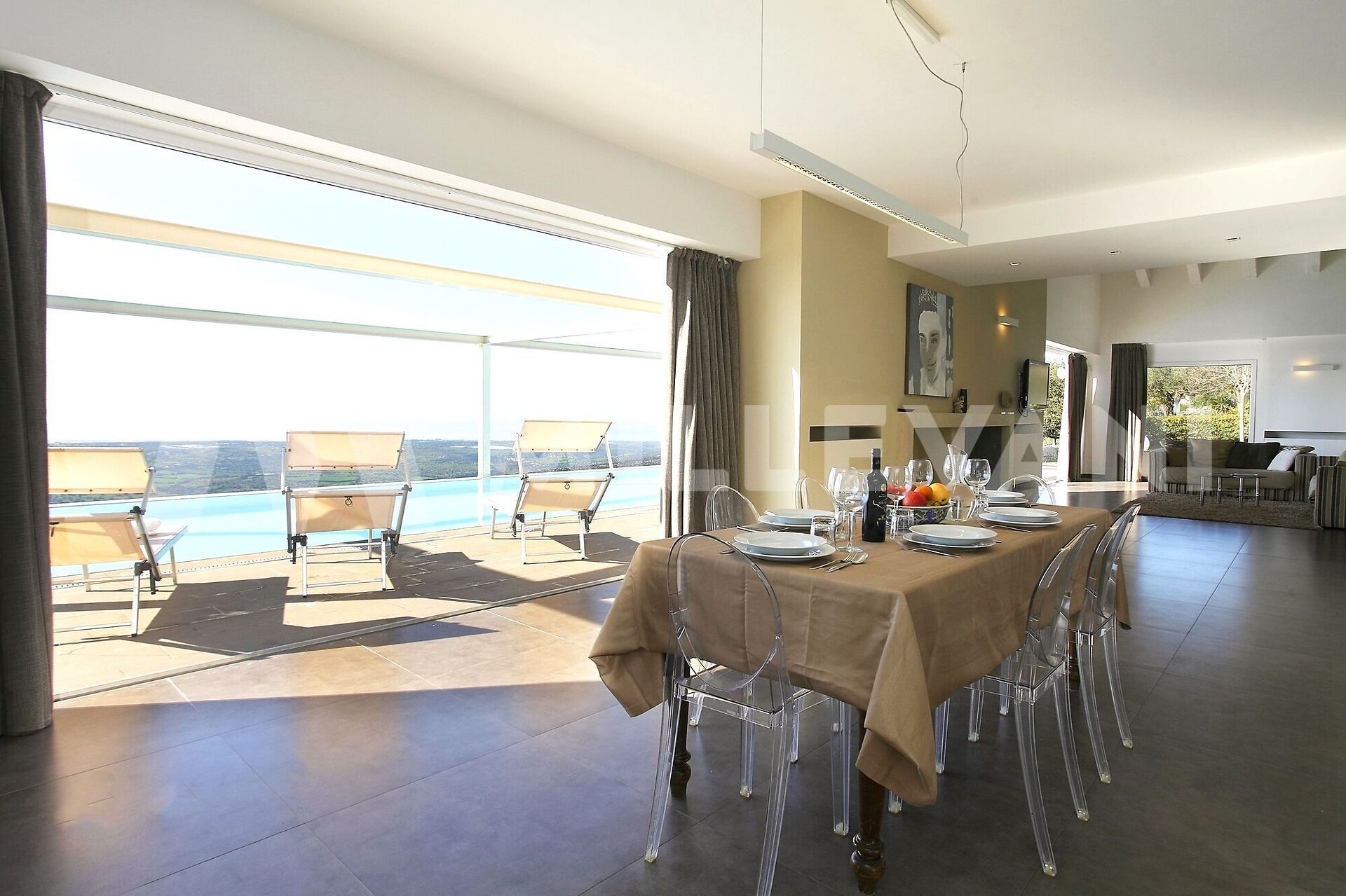 Between Marina di Ragusa and Ragusa, surrounded by greenery, we offer for sale a stunning modern villa with breathtaking views of the Ragusa coast.