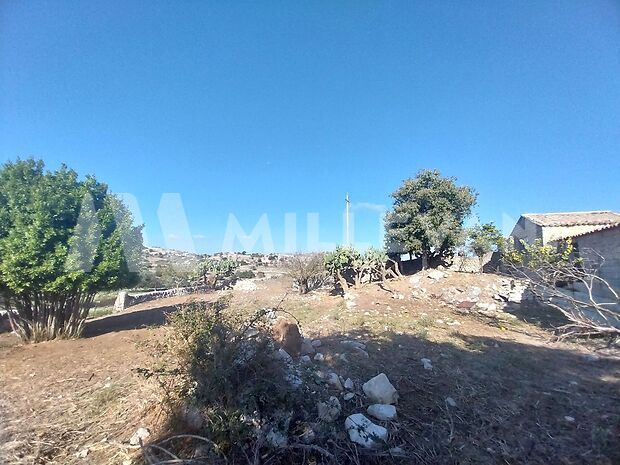 The property includes approximately 5,000 square meters of private land, completely fenced with dry stone walls, typical of the Iblean area.