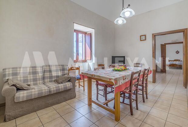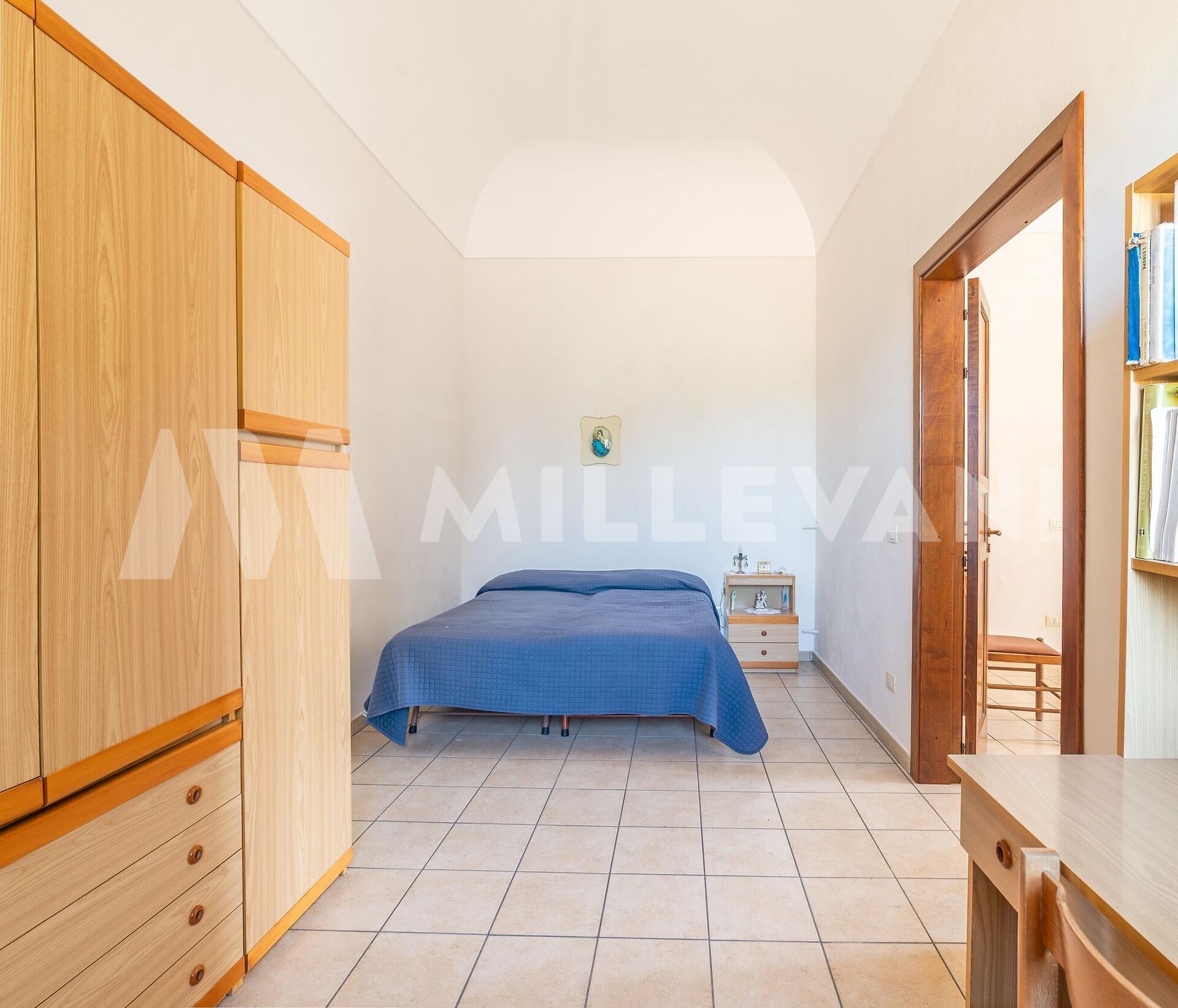 La masseria, interamente delimitata da muri a secco è composta da un corpo principale di circa 210 mq composto da due ingressi, soggiorno, sala da pranzo, cucina, 2 camere matrimoniali, una camera singola, bagno, lavanderia e locale forno e da 5 locali deposito e stalle con pietra a vista, su cui necessità un progetto di ristrutturazione, il tutto per un totale di 360 mq circa.