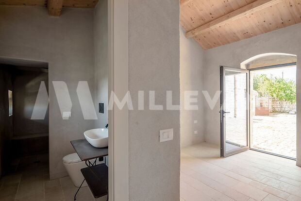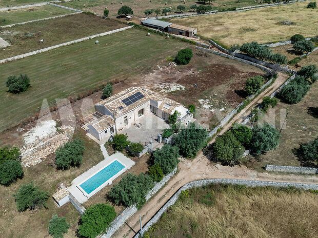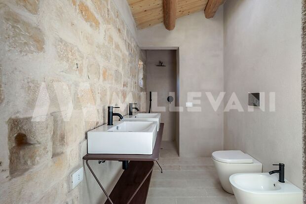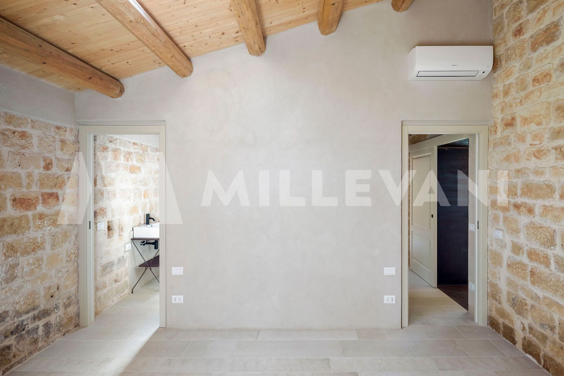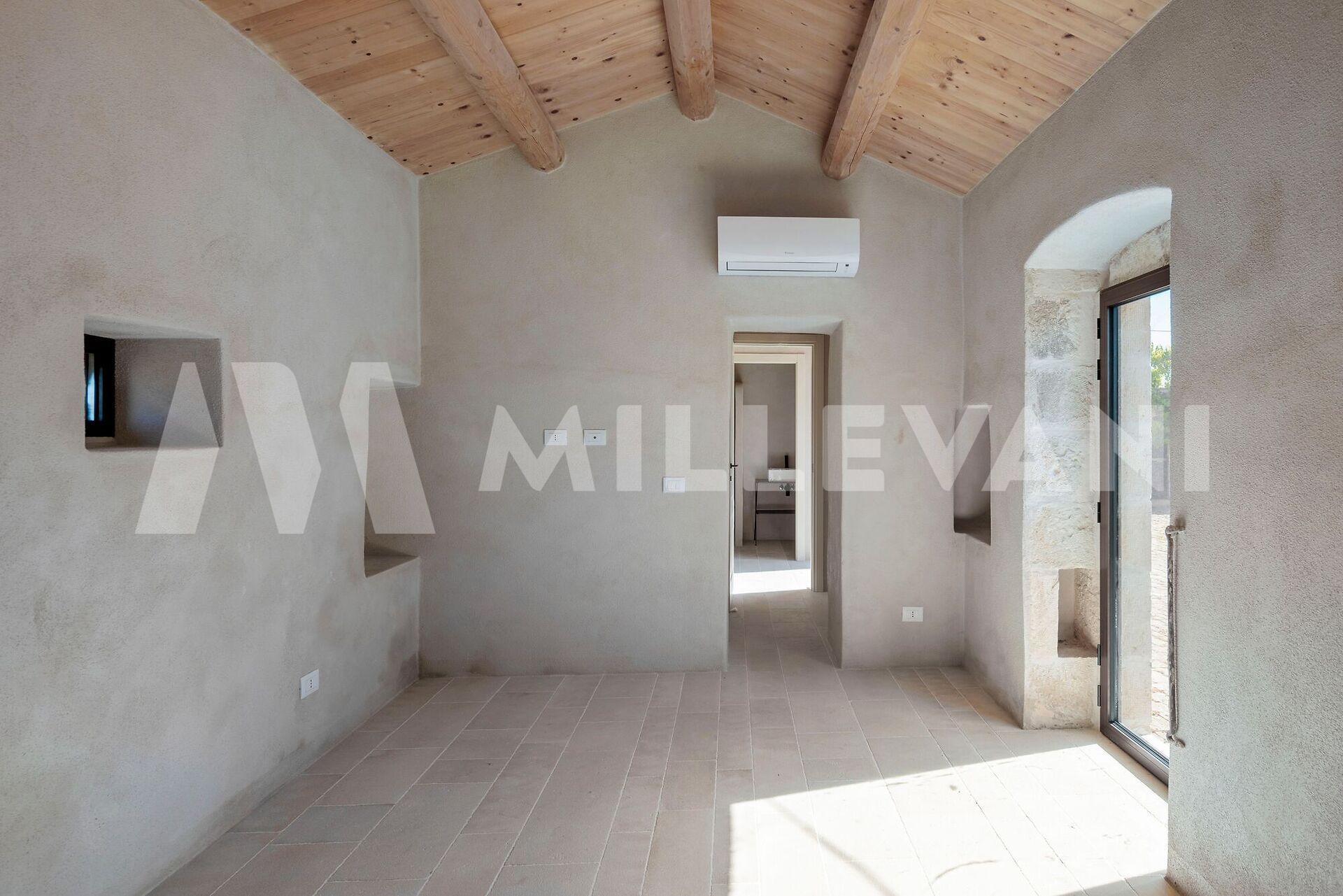 La proprietà conserva intatta l’autenticità dell’architettura rurale, con corte lastricata, muri a secco e coppi siciliani, abbinata però ad una tecnologia contemporanea di ultima generazione: impianti energetici ad alta efficienza, comfort abitativi studiati in ogni dettaglio.