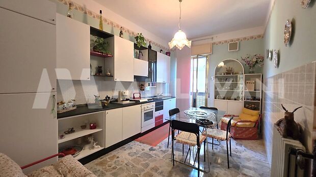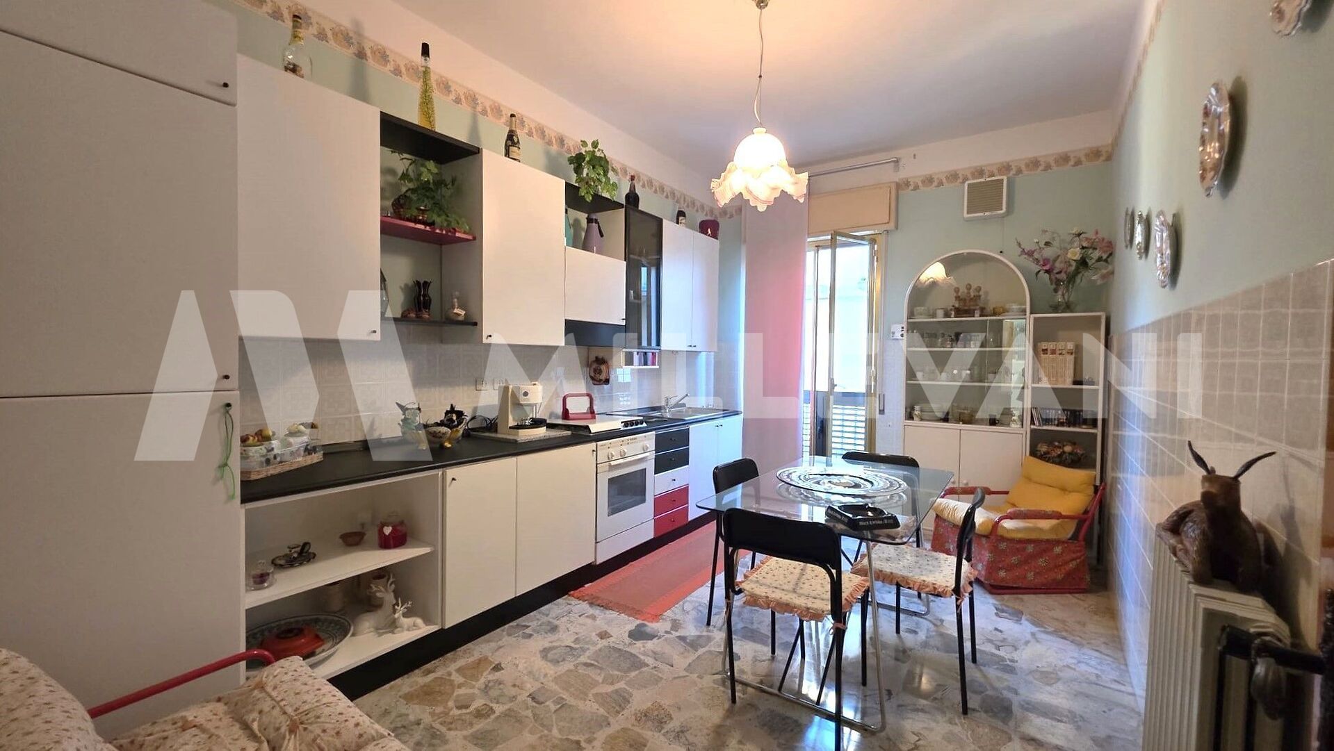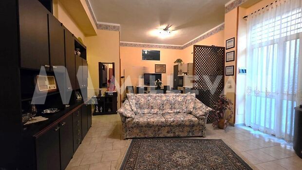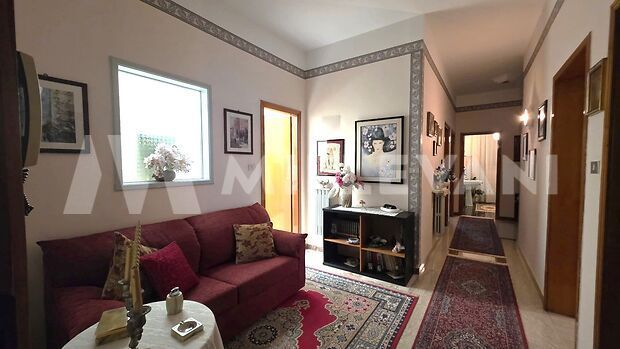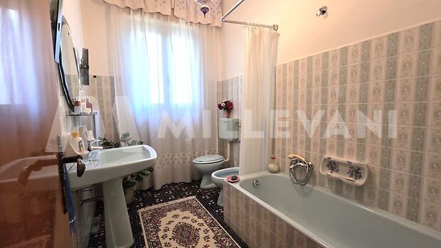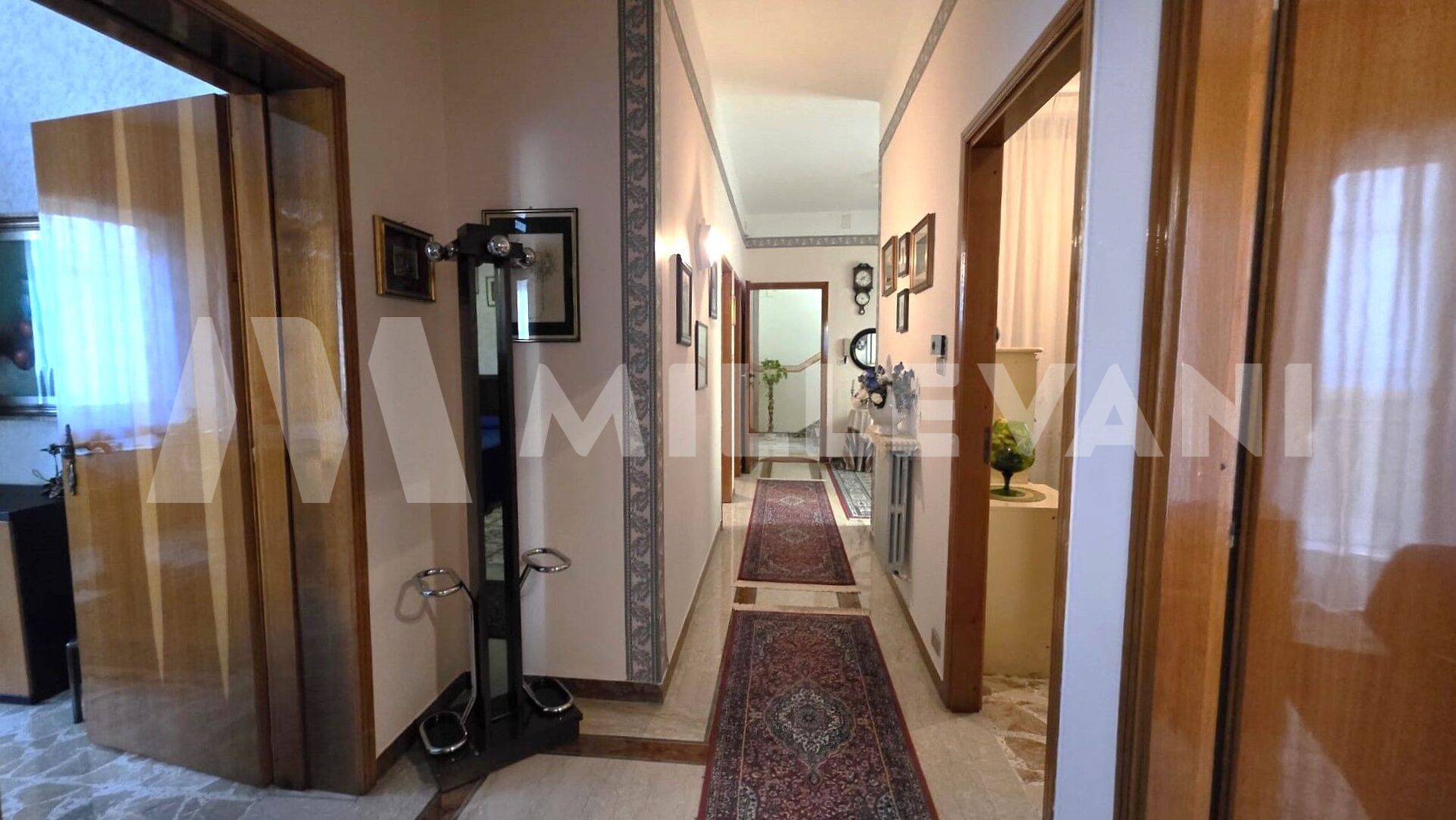 L’altro appartamento, al primo piano, di circa 120 mq, ampio e luminoso, è composto da ingresso, ampio salone, cucina, uno studio, una camera singola, una camera matrimoniale e bagno.