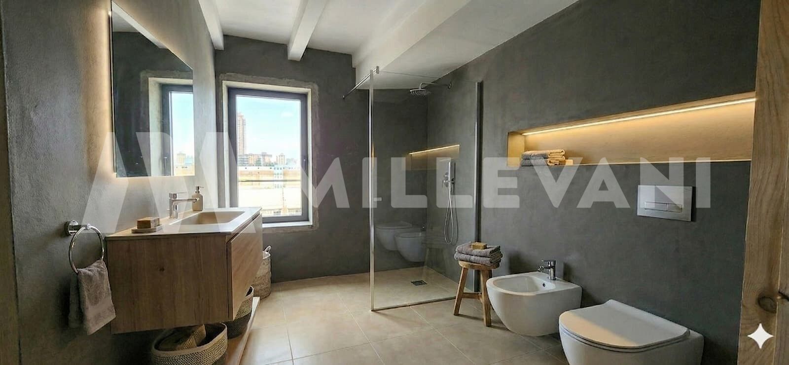 Situato al primo piano e servito da ascensore, l’immobile si sviluppa su una superficie di circa 110 mq e accoglie con un ingresso, luminosa zona living con cucina a vista, ideale per passare dei piacevoli momenti in famiglia o con amici.