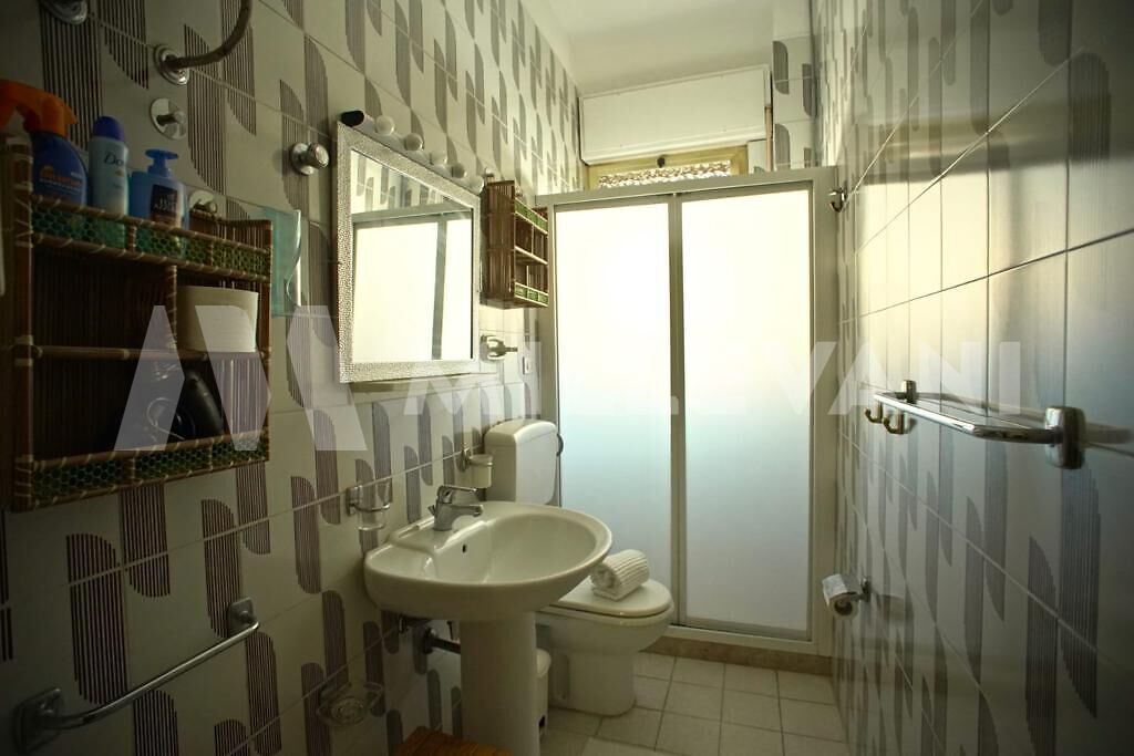 L'appartamento di 80 mq è composto da ingresso, cucina-pranzo, zona-living con vista mare, due camere matrimoniali, un bagno ed un ripostiglio.