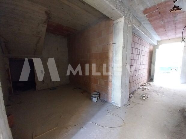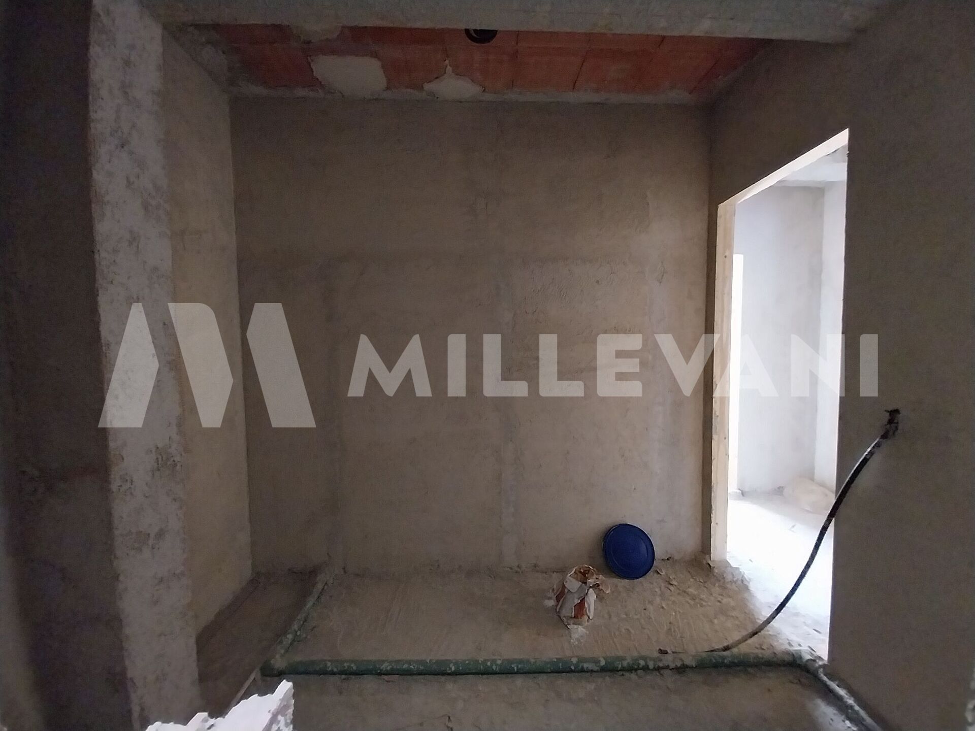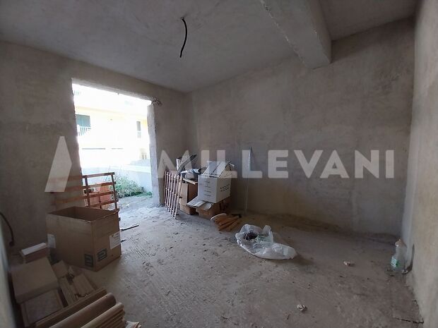 Con una superficie di 85 mq, l'appartamento è composto da soggiorno, cucina a vista, due camere matrimoniali, bagno, lavanderia e ripostiglio.