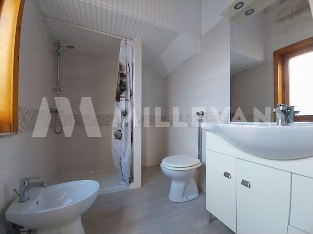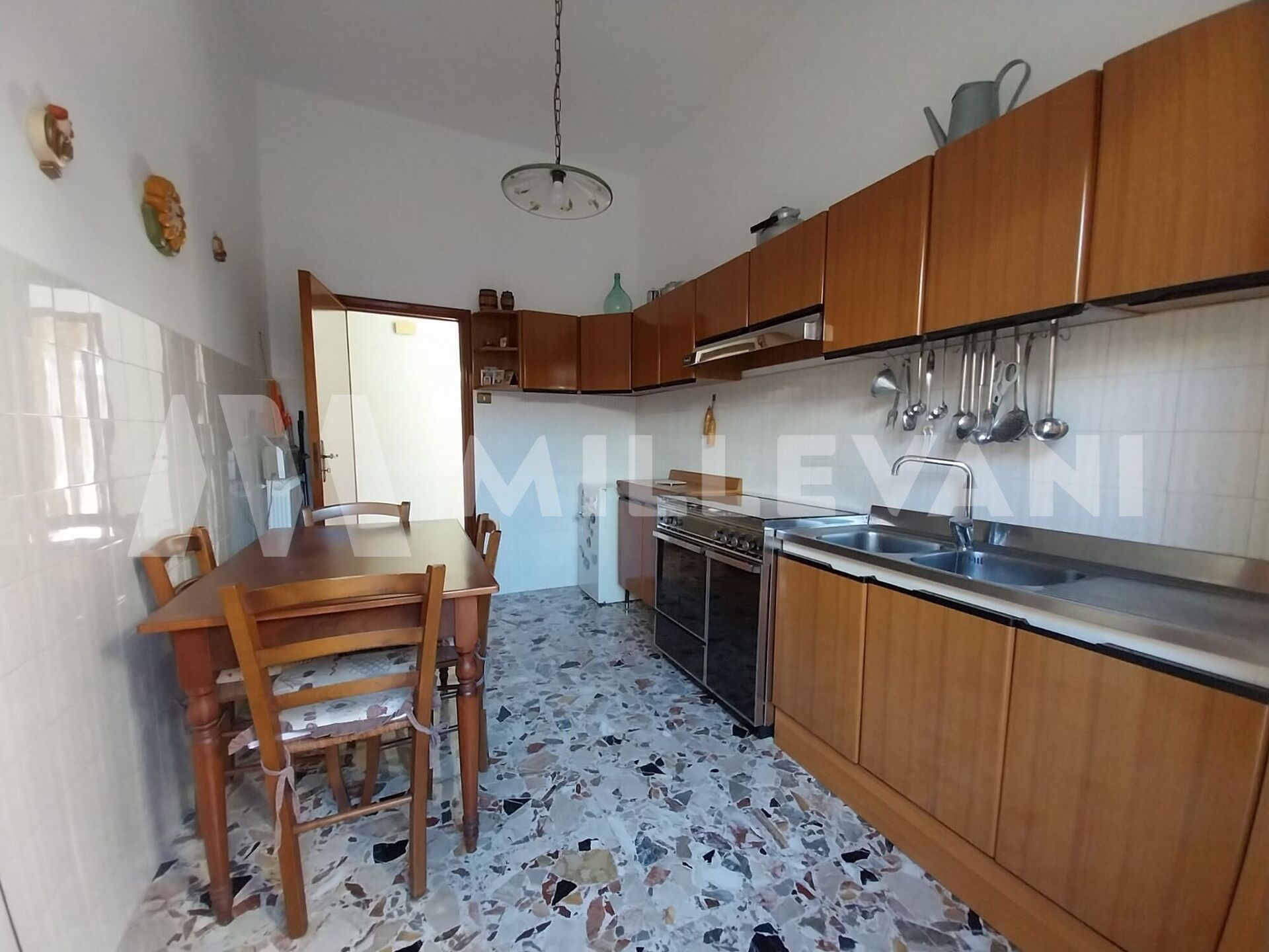 Al secondo e ultimo piano troviamo una comoda cucina abitabile che affaccia su una terrazza, ideale per momenti di convivialità all’aperto, con parziale vista mare.