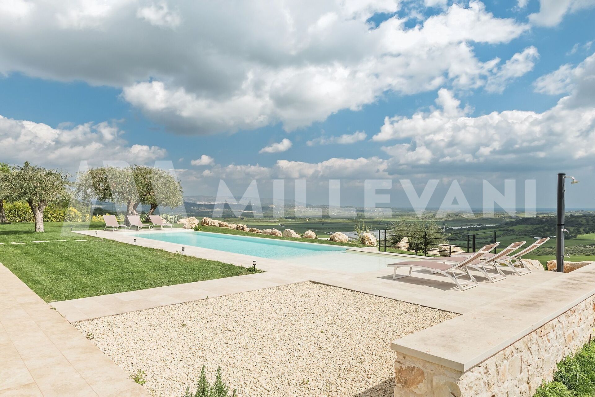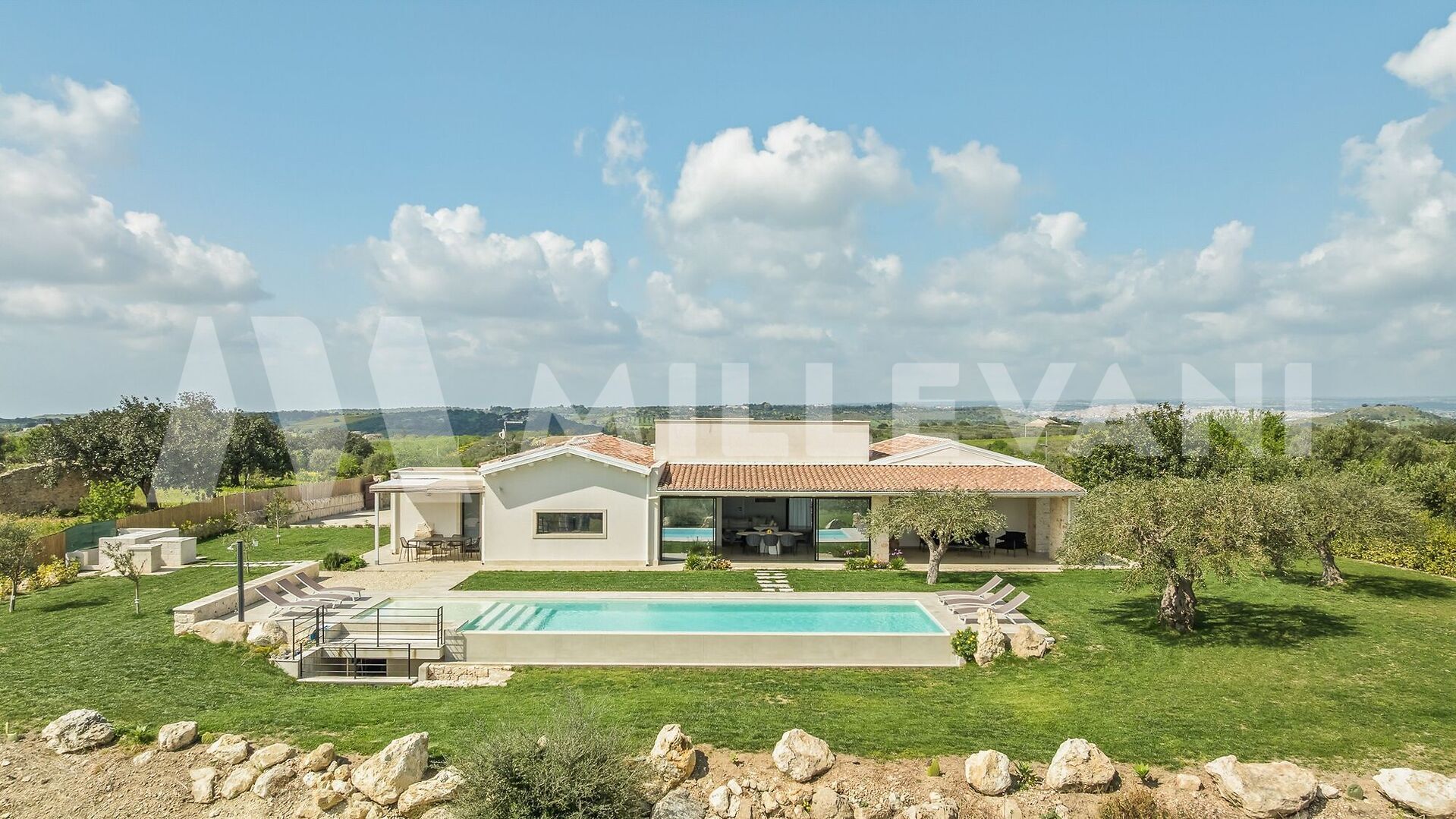 Completa la proprietà un terreno di circa 19.000 mq, impreziosito da un uliveto e un mandorleto, che garantiscono privacy, natura e un’atmosfera autenticamente siciliana.