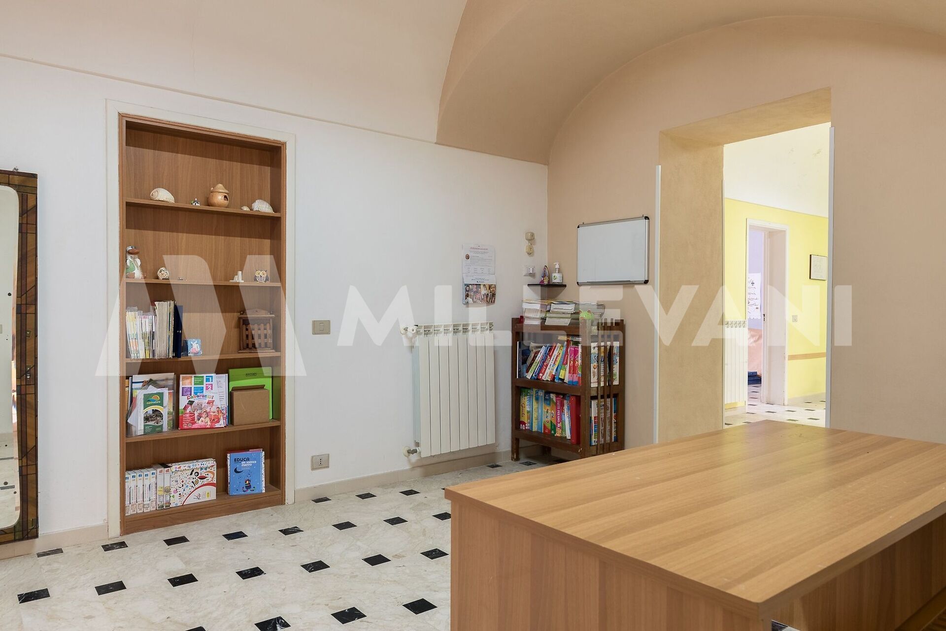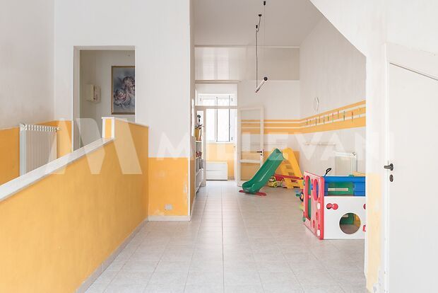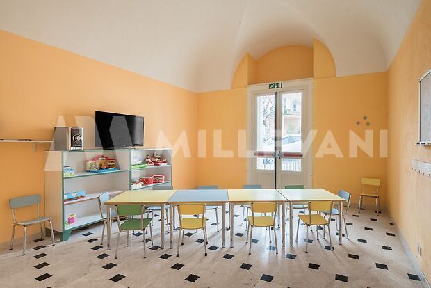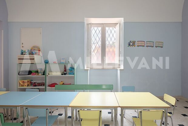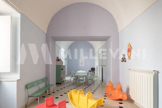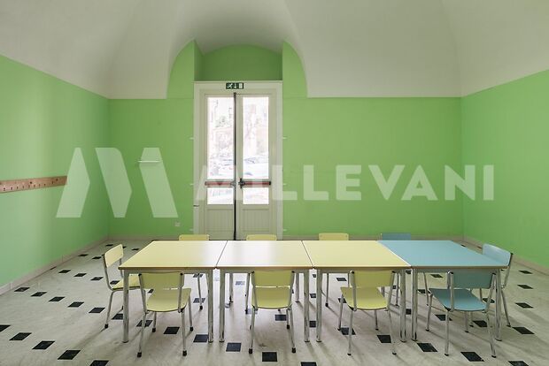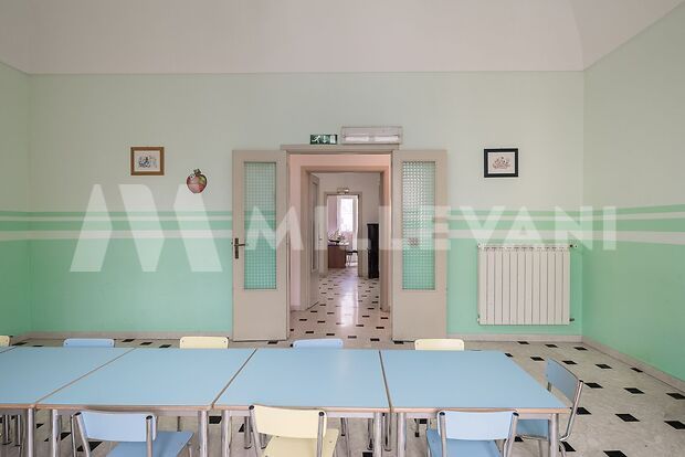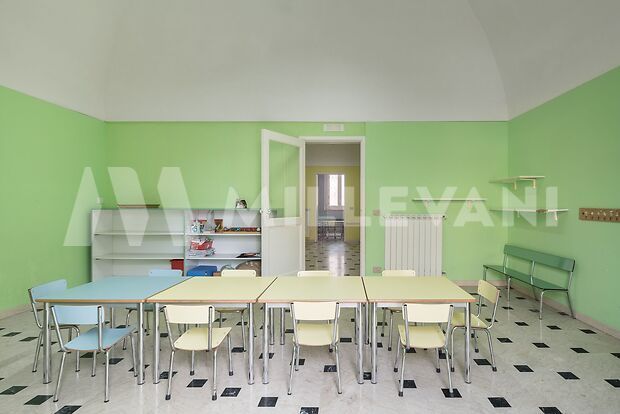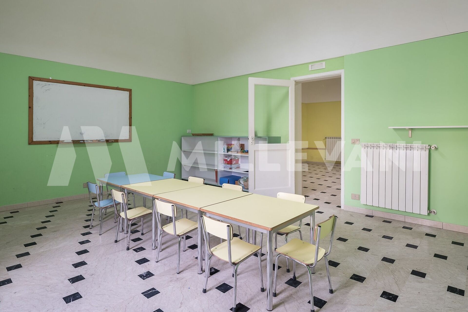 Attualmente l’edificio ha ospitato una scuola, presentando una distribuzione interna funzionale e numerosi ambienti facilmente rimodulabili. La generosa metratura e la conformazione degli spazi consentono una riconversione versatile e strategica, tra cui:
