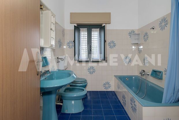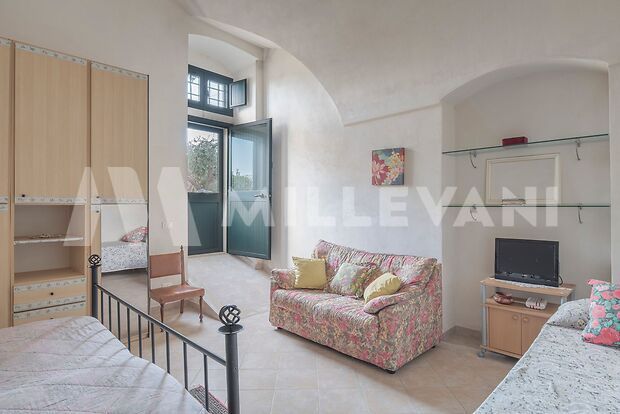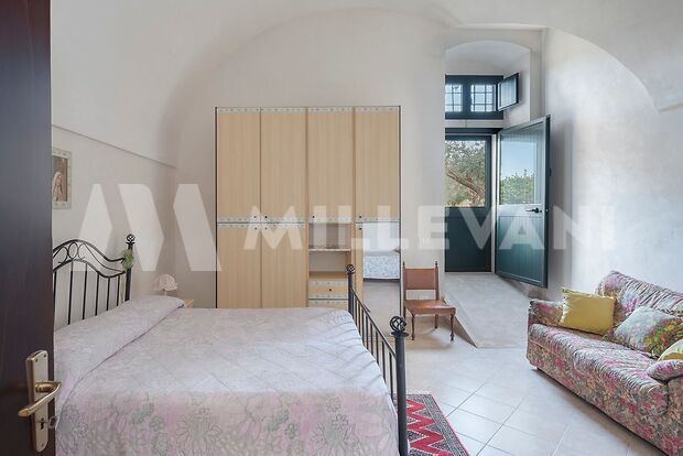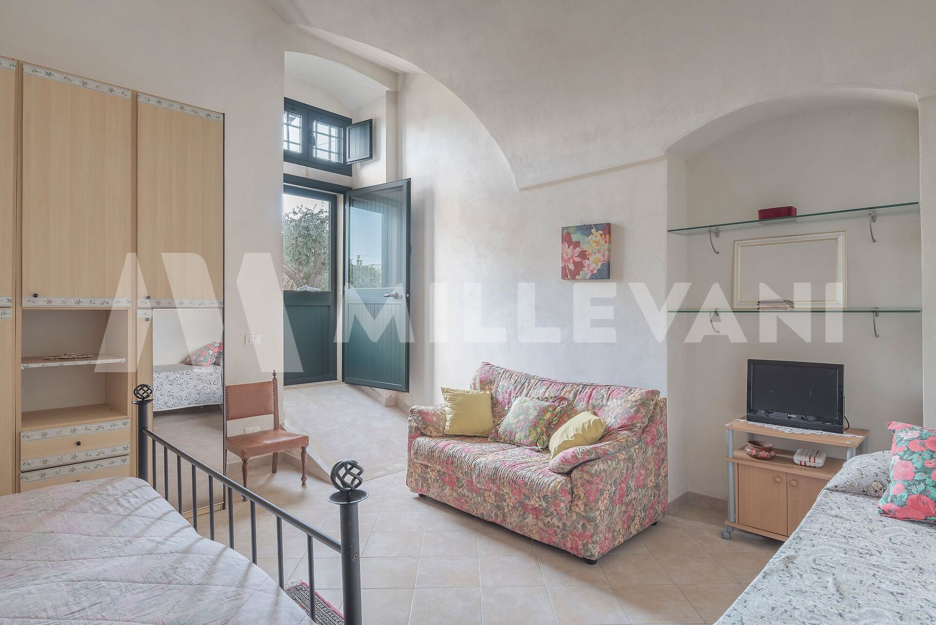 Completano la proprietà un garage di circa 25 mq, un giardino di circa 937 mq piantumato con alberi di ulivo e un terreno agricolo di circa 7500 mq.