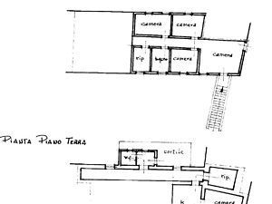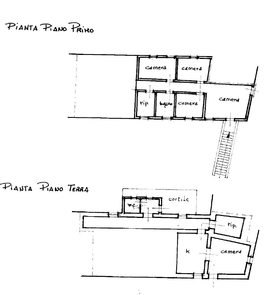 Tramite scala esterna si accede al primo piano in cui troviamo ingresso-salotto, tre camere da letto, ripostiglio, bagno e un ampio vano.
