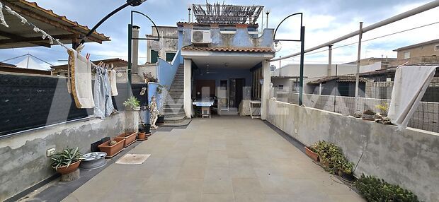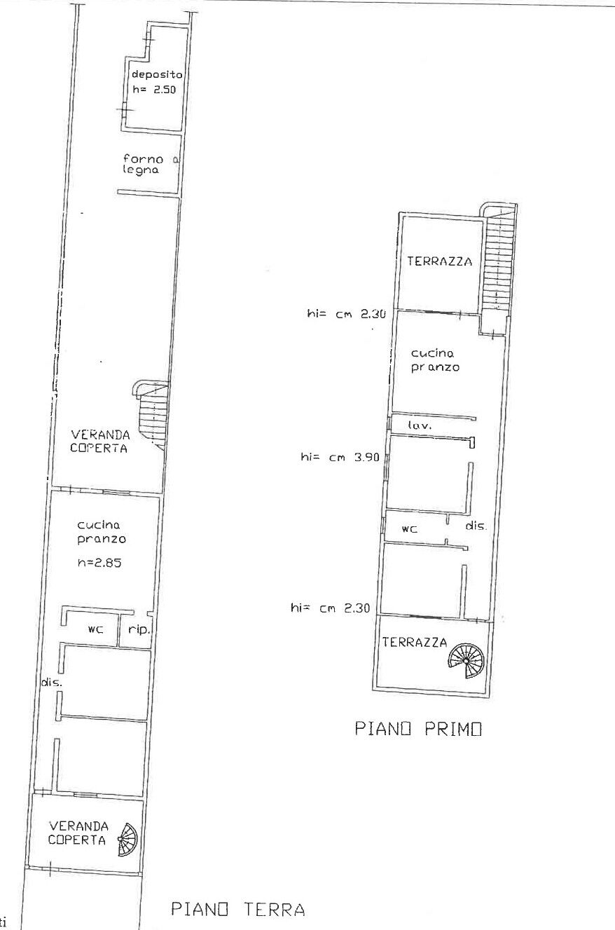 Attraverso una scala esterna si accede al primo piano, di circa 65 mq, composto da una luminosa zona cucina-soggiorno con accesso alla terrazza, due camere da letto e due bagni. Completano il livello una seconda terrazza sovrastante la veranda del piano terra, entrambe collegate da una suggestiva scala a chiocciola.