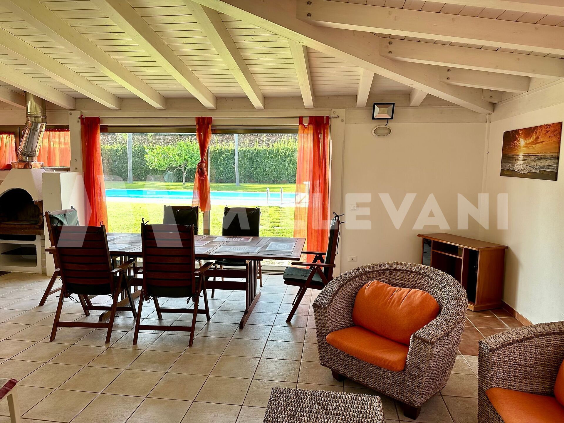 A completare la proprietà una bellissima piscina con solarium, dove poter trascorrere piacevoli momenti nelle calde giornate estive e un meraviglioso giardino piantumato con alberi e piante ornamentali che circondano la villa.