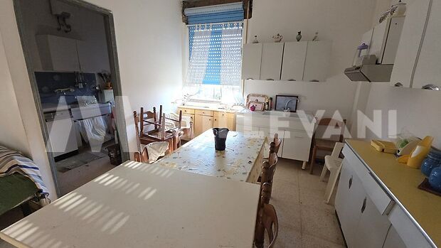 Il piano primo accoglie la zona abitativa principale, composta da ingresso, soggiorno, cucina, una camera matrimoniale, una camera singola e un bagno, con spazi ben distribuiti e facilmente adattabili alle proprie esigenze. Al piano terra si sviluppano ulteriori ambienti di servizio, tra cui una zona cucina, una cantina e un deposito, perfetti anche per essere valorizzati e integrati nel progetto abitativo.